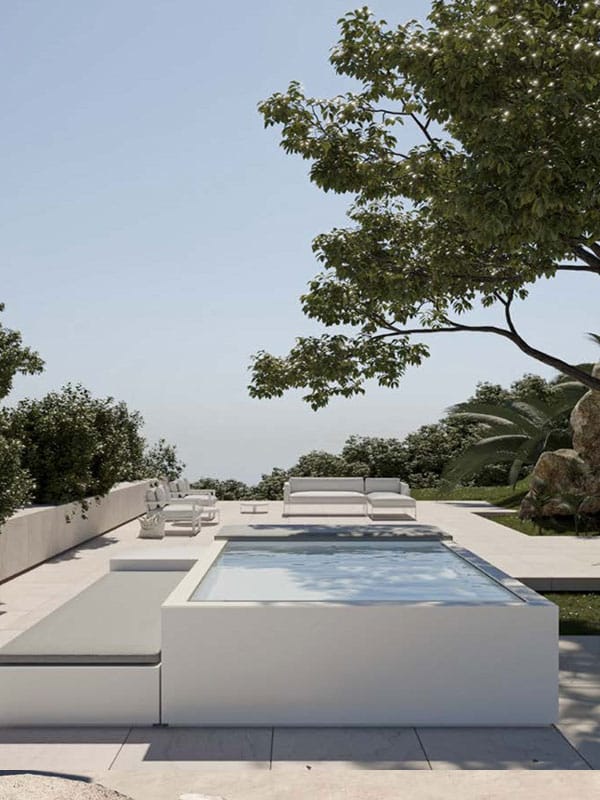 La arquitectura, las líneas y los volúmenes, son el hilo conductor de PISCINAS Up. Piscinas elevadas desbordantes, sin tener que acometer excavaciones o realizar complejas instalaciones. Tener una piscina minimalista, en tiempo récord, es posible.